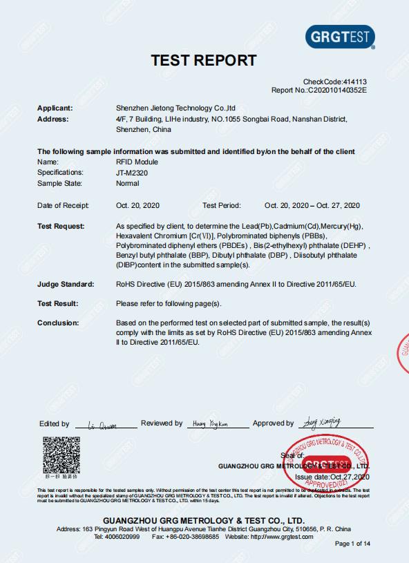 RoHS-rapport_JT-M2320 RFID-module