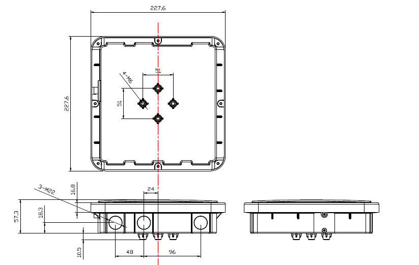 | Ontvangstiviteit | Afmetingen | 228(L)*228(W)*60(H)mm | ||