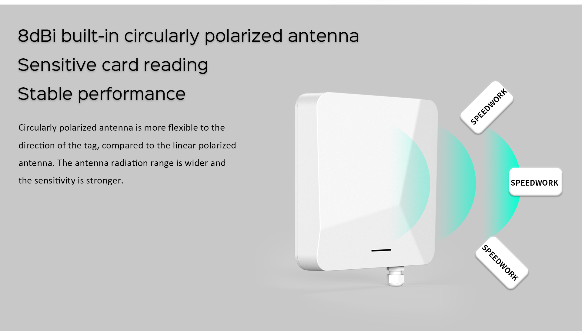| Afmetingen | 208(L)*208(W)*46(H)mm | 8dBi circulair gepolariseerde antenne (ingebouwd) | ||