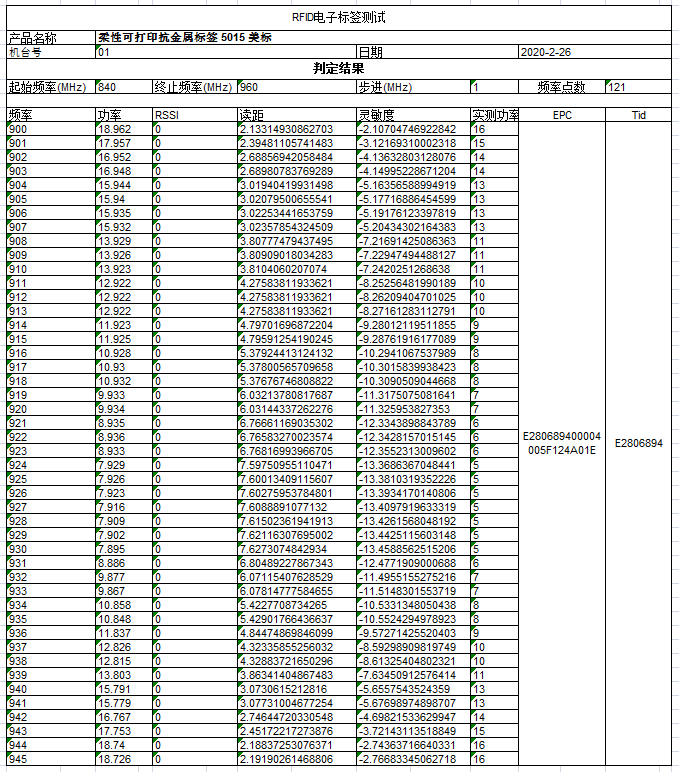 | JT-K8025 | 80*25*1,26 mm | Impinj Monza R6-P | 32-bits gebruiker, 48-bits TID, 128-bits EPC | |